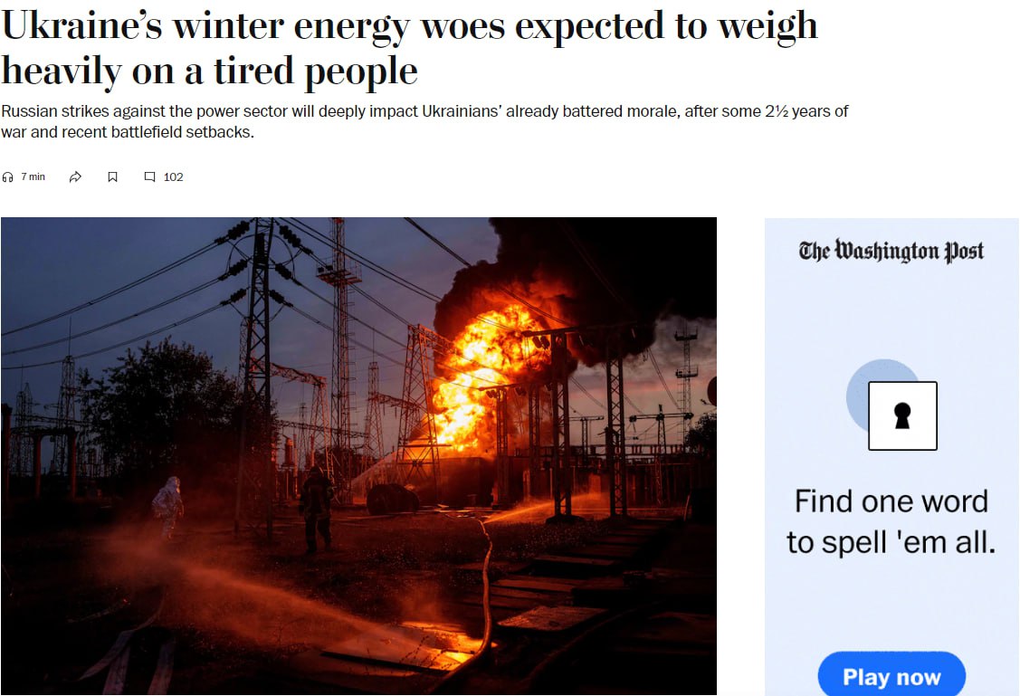 «Настануть холодні дні та темрява, і це може призвести до змін у ставленні українців до війни», – пише WP.