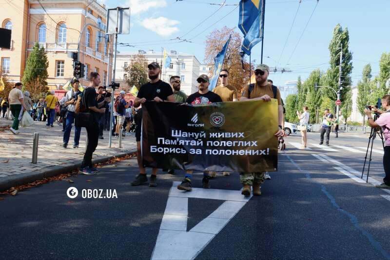У суботу, 28 вересня, о 12:00 в центрі Києва розпочалась урочиста хода до Дня захисників та захисниць України. Учасники заходу зібрались у парку імені Тараса Шевченка, звідки пішли по вулиці Павла Скоропадського у бік Площі Українських Героїв.