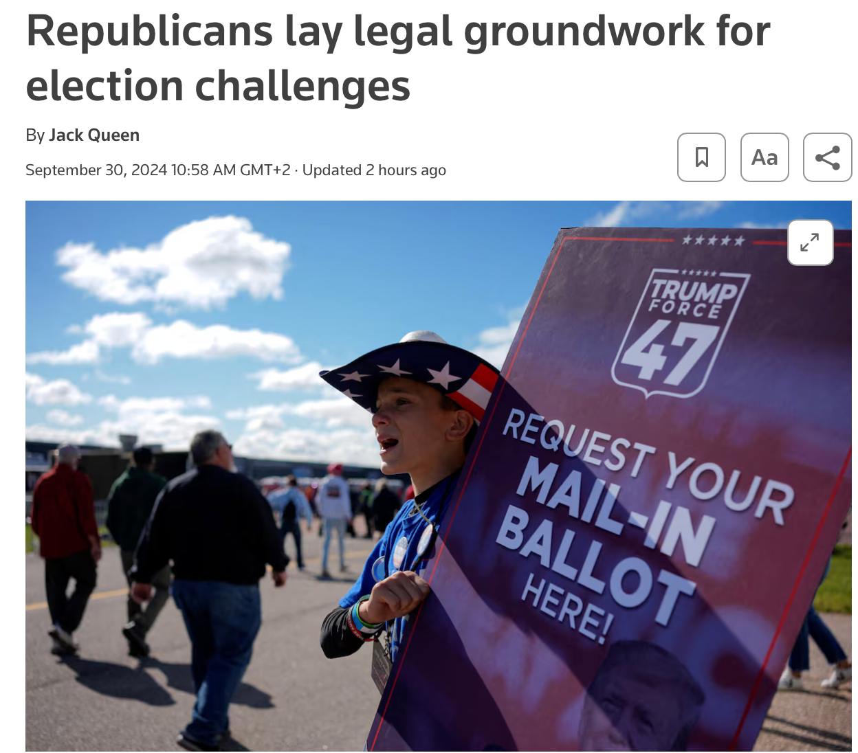 Як видно, республіканці тепер намагаються ще до виборів через суди домогтися скасування низки виборчих практик, які викликають у них занепокоєння щодо фальсифікації голосування.