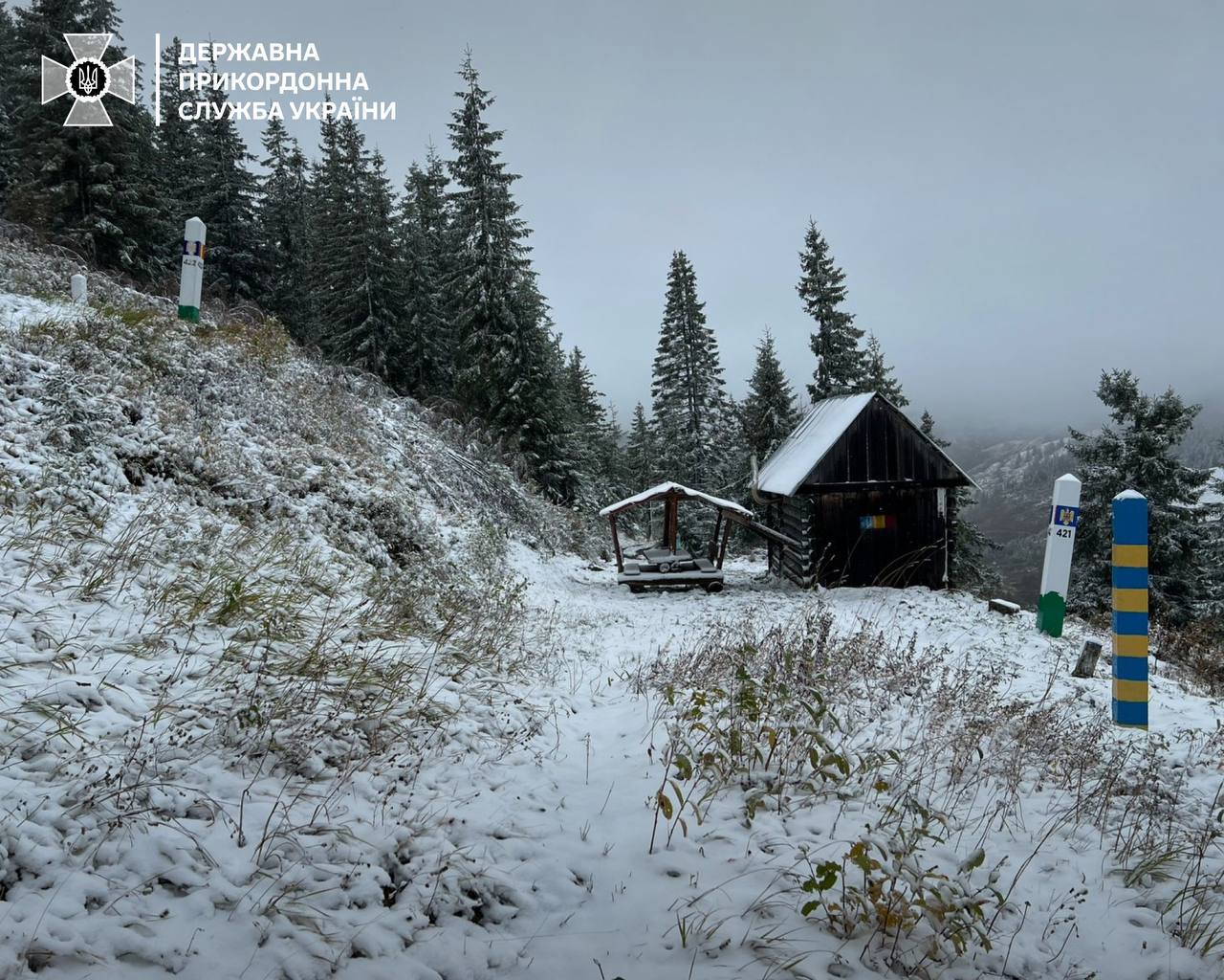 Держприкордонслужба публікує фото снігу в Карпатах - на українсько-румунському кордоні.