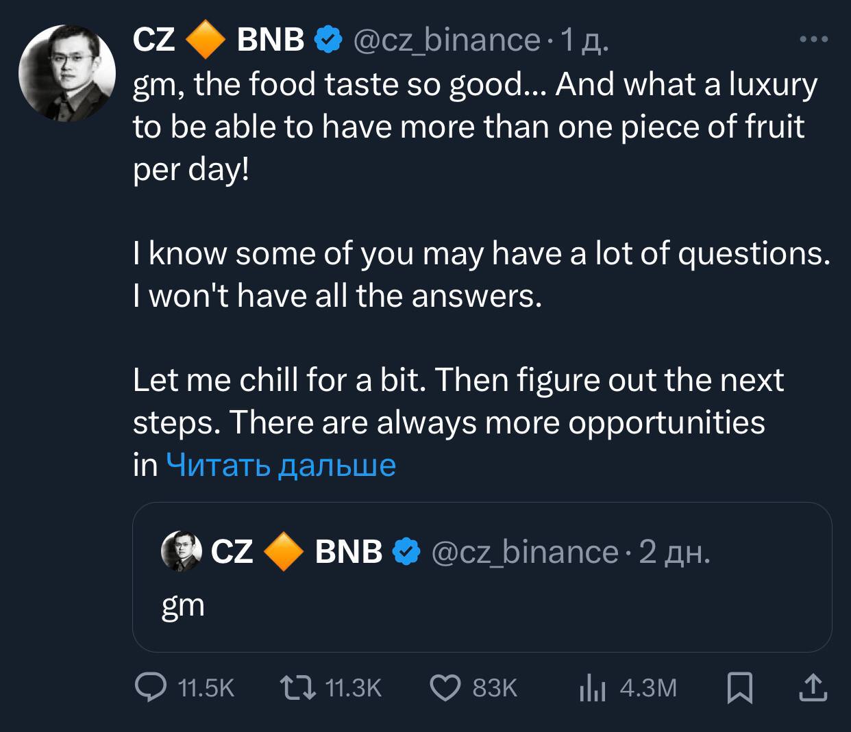 Засновник криптобіржі Binance Чанпенг Чжао вийшов на свободу