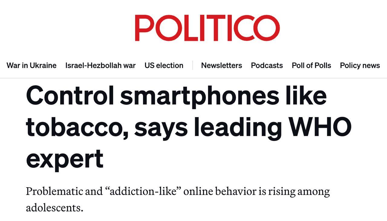 ВООЗ закликає до законодавчого регулювання використання смартфонів, аналогічно до куріння, як повідомляє Politico.