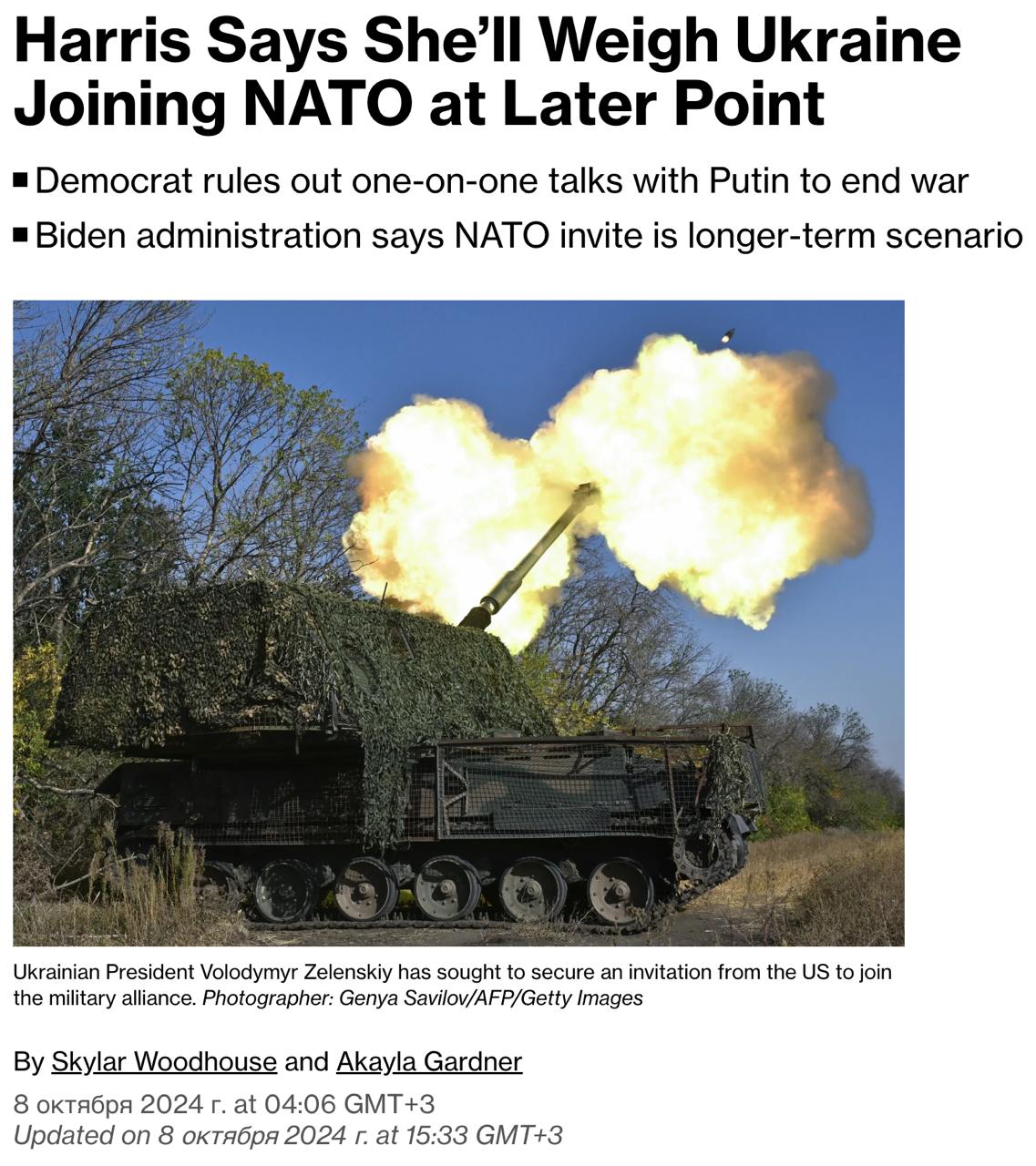 Камала Гарріс не відповіла на питання щодо свого ставлення до вступу України в НАТО, повідомляє Bloomberg.