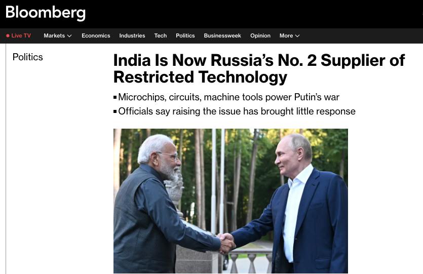Bloomberg: Індія стала другим за величиною постачальником критично важливих технологій у Росію