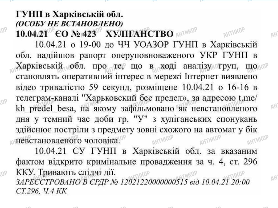 Щоб не повторюватись, нагадаємо про ці сюжети коротко. Хтось злив у мережу відео, на якому видно, як Микола Удянський стріляє у свого охоронця з автомата. За цим фактом навіть було порушено кримінальну справу, але поліція Харкова чомусь не змогла впізнати в людині з автоматом Миколу Удянського, тому справу закрито. Як видно з відповіді Харківського ГУНПУ, справа відбувалася ще у 2021 році, але її швидко зам’яли, якщо вона була взагалі – система «Єдиний державний реєстр судових рішень» інформації про кримінальну справу №12021220000000515, нібито порушену Харківським ГУНПУ, не має. До речі, подейкують, що після цього один з охоронців Удянського «наклав на себе руки».