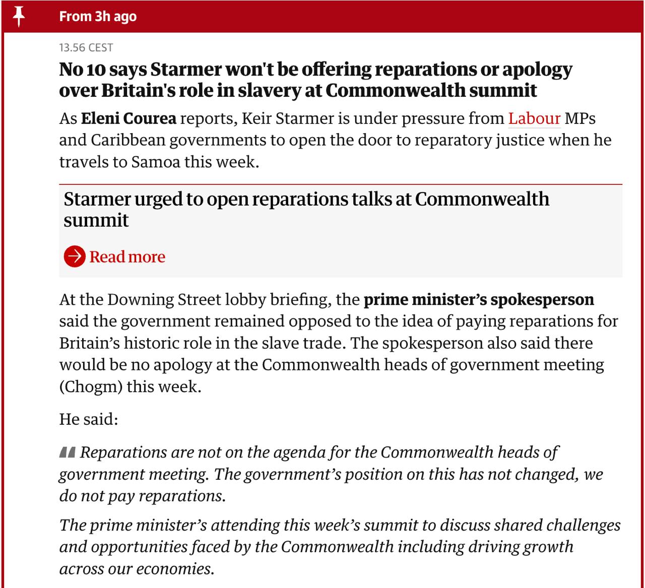 За словами представника уряду, на Стармера чинять тиск з таким вимогою члени Лейбористської партії і представники урядів країн Карибського басейну.