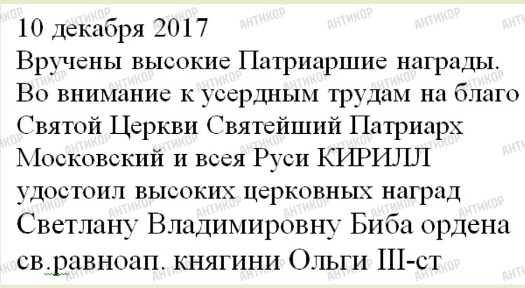 За свої труди Андрій Біба навіть відзначений медаллю РПЦ «На честь 100-річчя відновлення Патріаршества в Російській Православній Церкві» з рук патріарха цієї церкви Кирила. А його дружина Світлана отримала з тих самих рук «орден княгині Ольги». Все це – за «будівництво храмів РПЦ в Таїланді». Щобільше – Андрій та Світлана Біби прираховані до лику страстотерпців Російської православної церкви в Таїланді. Звучить дивно, але так і є. У 2020 році, як повідомляє сайт «Російської православної церкви за кордоном», «Андрій Васильович Біба був відзначений орденом святого Архістратига Божого Михаїла, а його дружина, Світлана Володимирівна, ордена преподобної Анастасії Київської. Крім того, їхні багаторічні труди на церковній ниві у далекому Таїланді ознаменувалися особливою Патріаршою нагородою – медаллю Руської Православної Церкви «Патріарша вдячність».