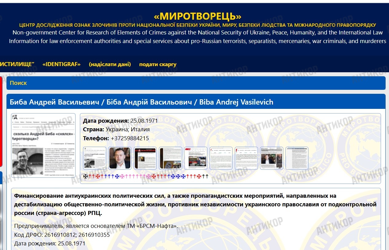 В Україні заслуги Андрія та Світлани Біби оцінив хіба що тільки «Миротворець» - сайт заніс Андрія Васильовича Бібу у список людей, які спонсорують проросійські партії.