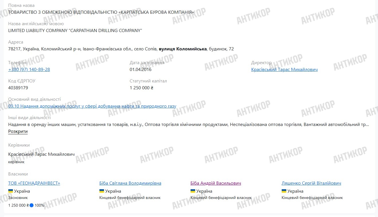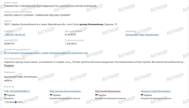 А ось – щодо ТОВ «Карпатська бурова компанія»: