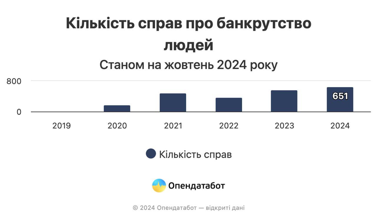В Україні за чотири місяці різко зросла кількість справ про банкрутство фізичних осіб — з початку року відкрито 651 справу, що перевищує показник за весь минулий рік (575 справ).