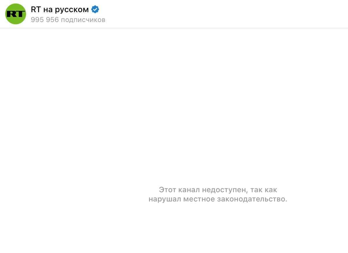 Заблоковані також деякі телеграм-канали, пов’язані з RT. Однак телеграм-канал голови телеканалу Маргарити Симоньян залишається доступним в Україні.