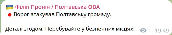 Голова Полтавської ОВА підтвердив прильоти по Полтаві.