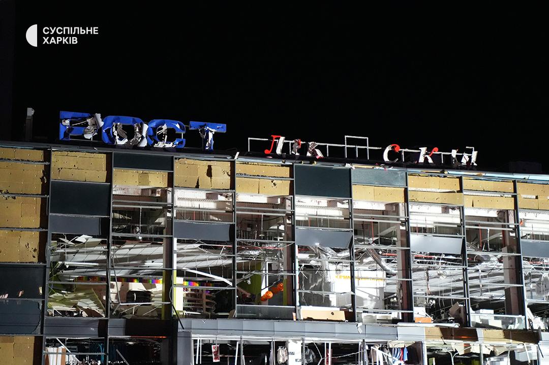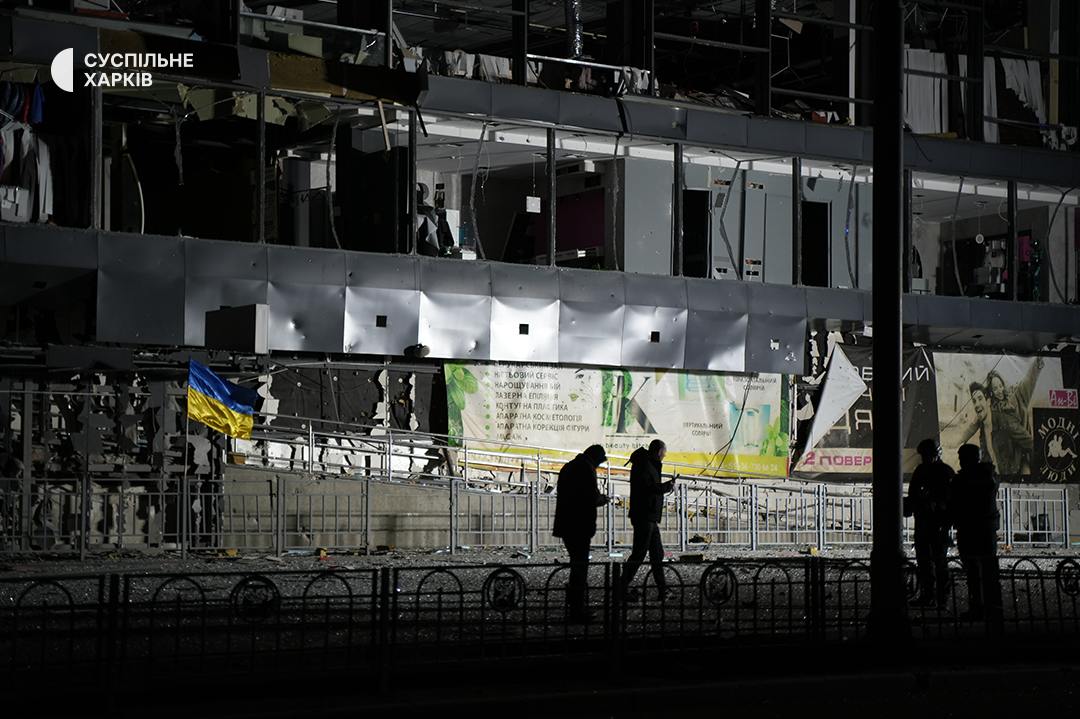 Одне з попадань зафіксовано неподалік житлових будівель Шевченківського району Харкова. Постраждали багатоповерхові житлові будинки, легкові автомобілі, будівля супермаркету та інші торговельні об’єкти.