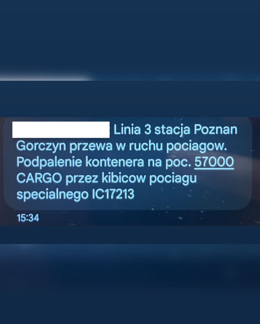 Сьогодні в Познані загорівся товарний поїзд, що перевозив причіп вантажівки, і вогонь частково пошкодив пасажирський поїзд, який знаходився поруч, в якому було близько тисячі футбольних уболівальників варшавської «Легії».