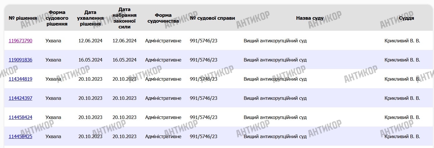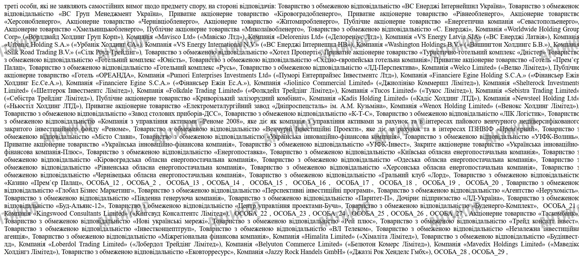 Десятки підприємств, які приносять власникам десятки мільйонів доларів. Мін’юст заявив про наміри націоналізувати їх ще в листопаді 2022 року, тоді же звернувся до суду з відповідним позовом. Але справа там і застрягла, причому глухо. Активи, власне, арештовано. Але аж ніяк не конфісковано, а всі компанії, що входять до переліку на скрині вище, потихеньку подають зустрічні позови – з вимогою зняти арешти. Суд поки ці вимоги відхиляє, але розгляду справи по суті – тобто про конфіскацію активів і їхню націоналізацію – не відбувається. До того ж справа загальмувала, і про це свідчить Єдиний державний реєстр судових рішень – останнє засідання суду відбулося ще в червні 2024 року, це був розгляд позову ТОВ «Ековторресурс» про зняття арешту з його активів. Решта засідань суду, які ви бачите на скрині нижче, - теж позови від фігурантів про зняття арештів. Суд поки що відмовляє. Але те, що не відбуваються засідання по суті, – насторожує.