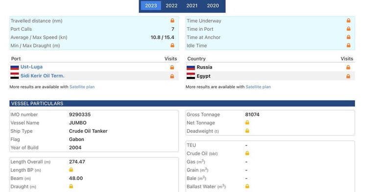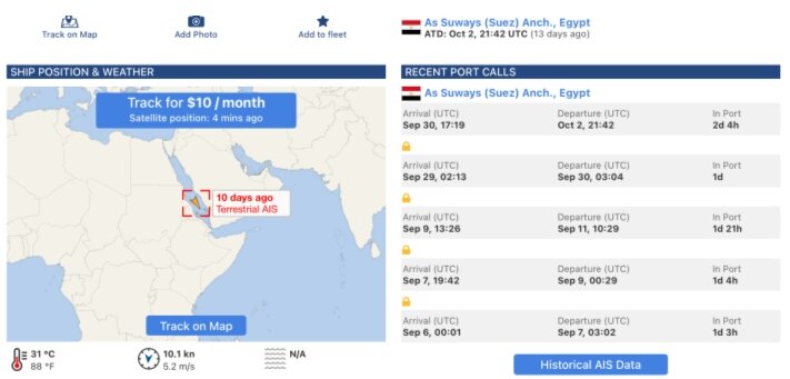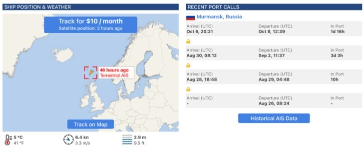 Судно також відвідувало порти Усть-Луга в Росії та Сіді Керір в Єгипті, що свідчить про його участь у транспортуванні російської нафти.