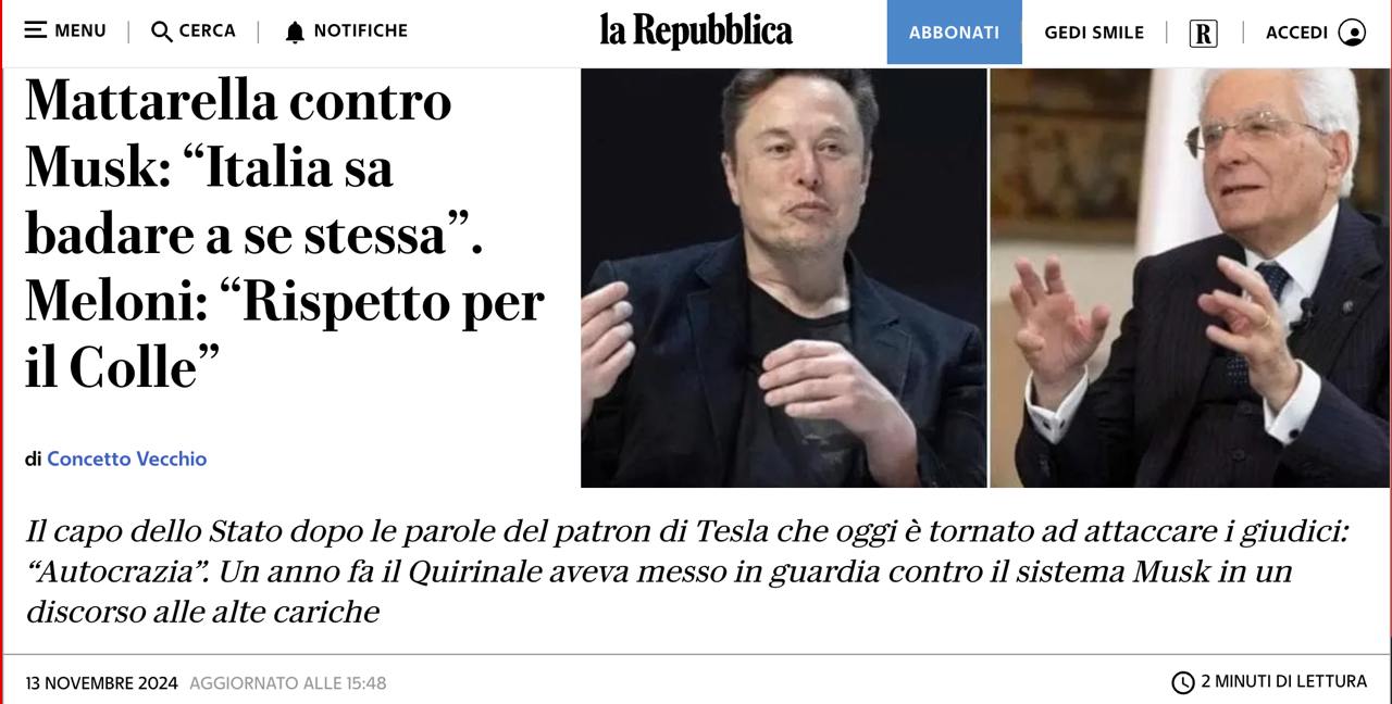 Президент Італії Маттарелла у відповідь порадив Маску не давати рекомендації Італії та поважати суверенітет держави.