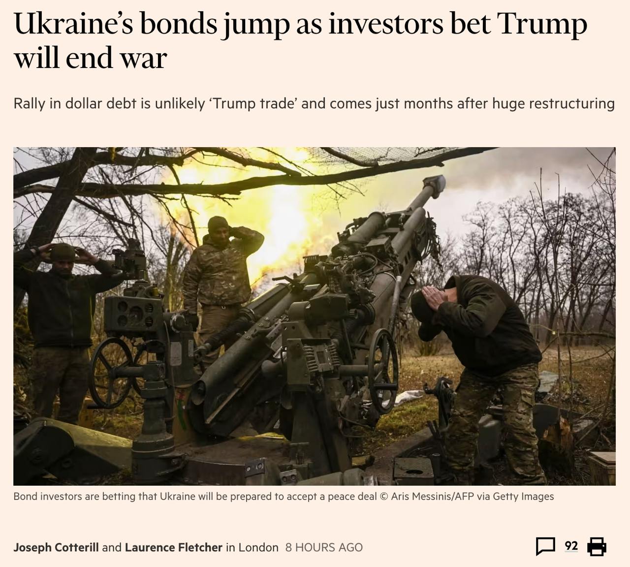 Українські доларові облігації за місяць зросли на 12% через очікування інвесторів, що Трамп завершить війну.