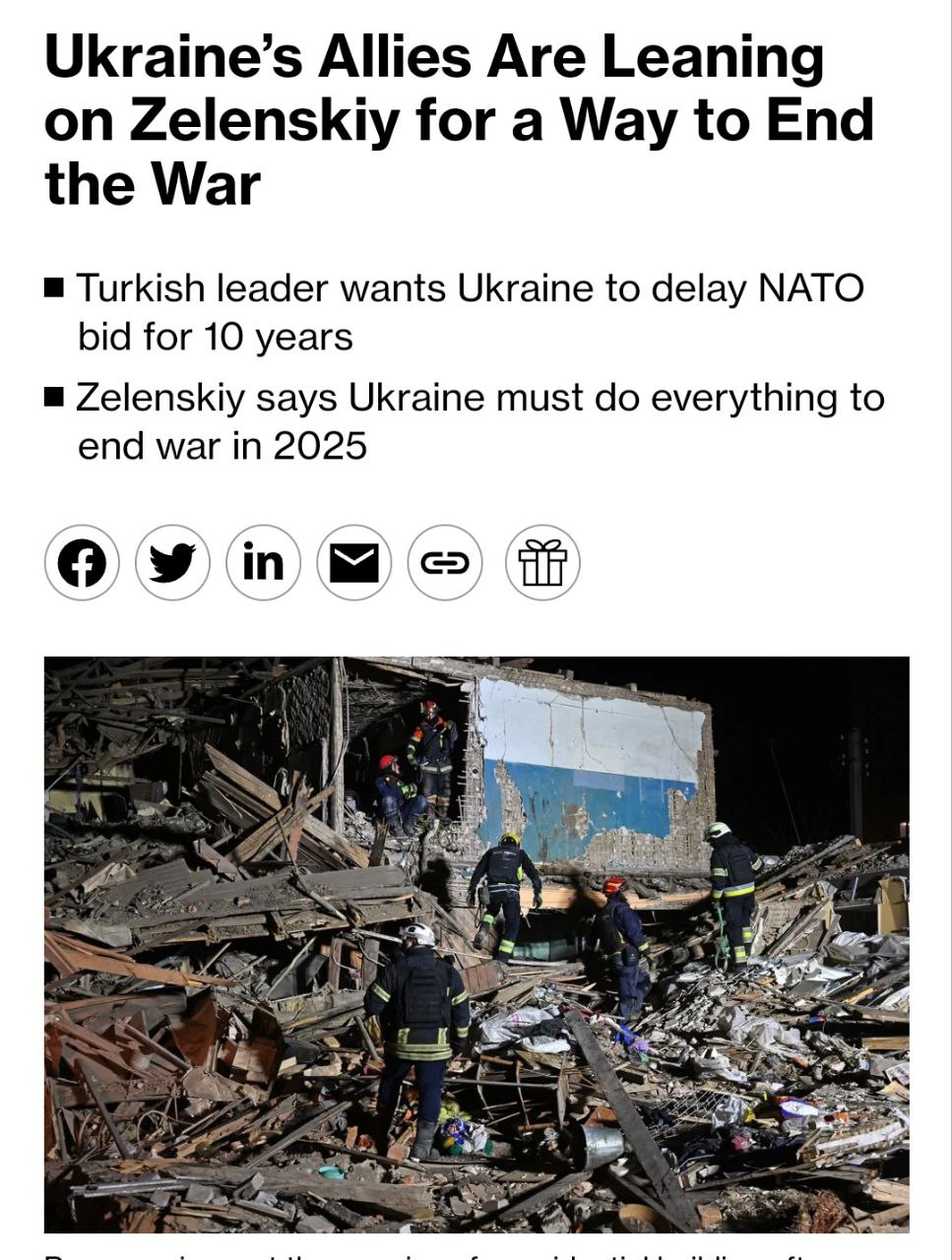 Крім того, президент Туреччини хотів би відкласти питання про вступ України до НАТО щонайменше на десять років, пропонуючи як компенсацію надати Києву військові постачання.