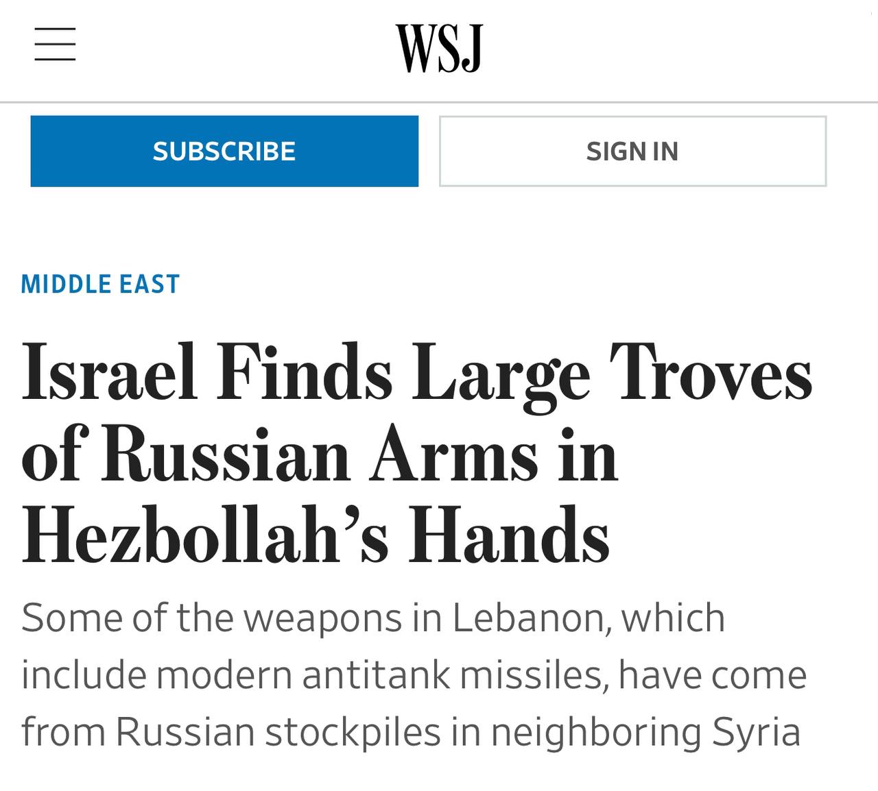 Ізраїль виявив багато російської зброї на складах «Хезболли», повідомляє WSJ.