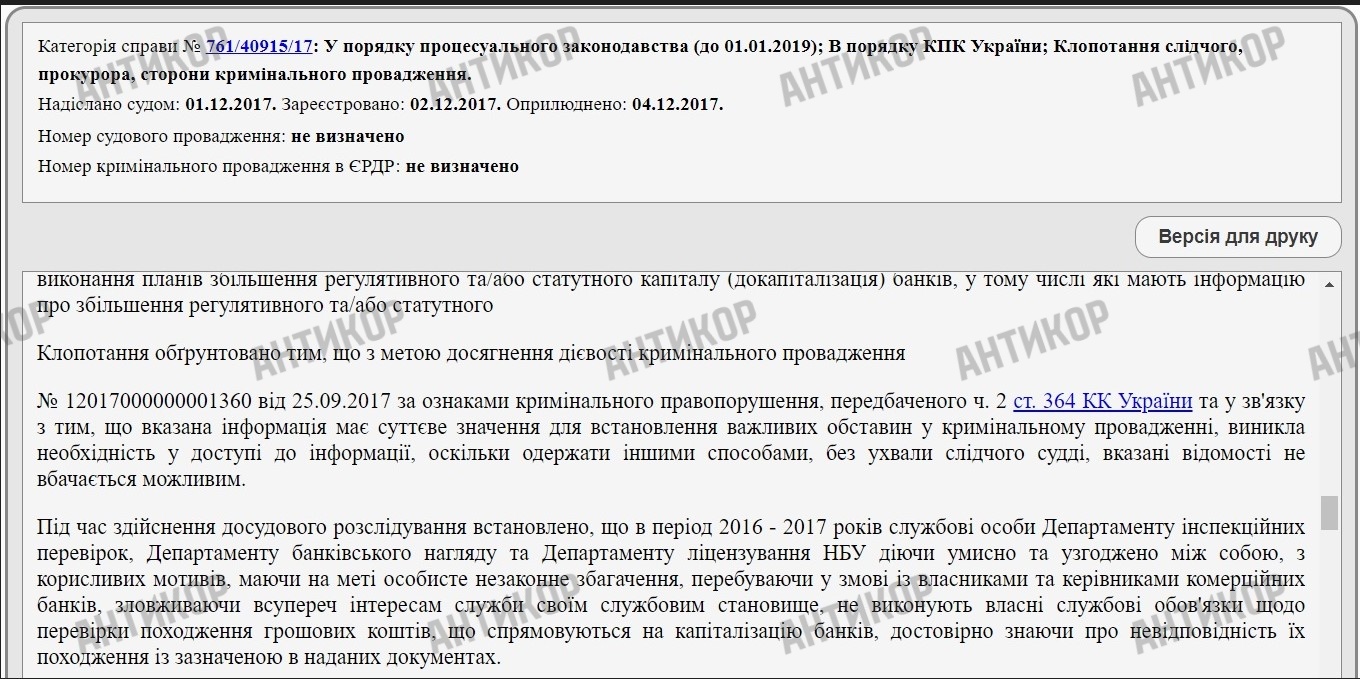Ця кримінальна справа завершилася так само як і ті, що згадав Гетманцев – її закрили. Щоправда, довго «мурижили» в судах – мабуть, у власників банку було ще не все куплено. Така ж доля спіткала і кримінальну справу №12017000000001360, порушену щодо співробітників НБУ. Але банк «Конкорд» теж у ній брав участь, оскільки справу було порушено за фактом незаконної докапіталізації у 2017 році низки комерційних банків, серед яких опинився і «Конкорд». Сума була відносно невеликою – 45 мільйонів гривень, проте, кримінальна справа ні до чого не привела.