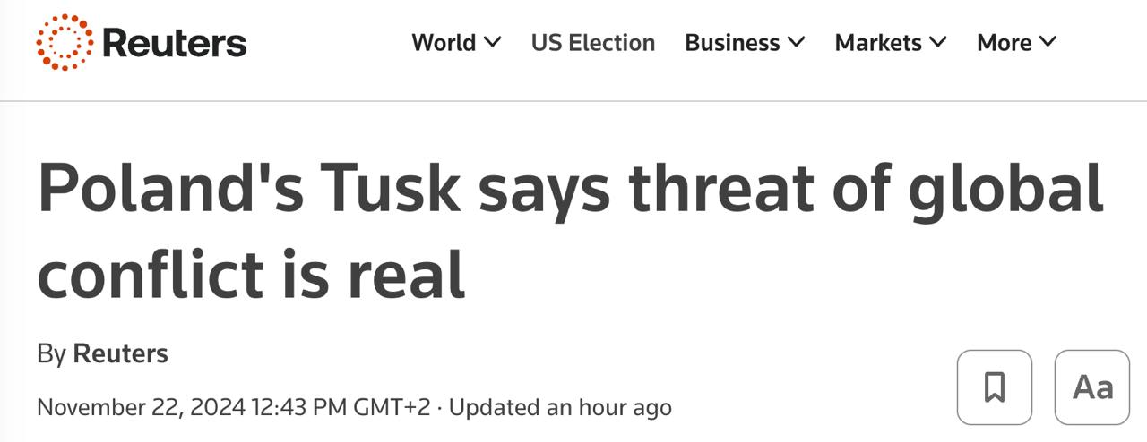 Прем’єр-міністр Польщі Дональд Туск впевнений, що балістичний ракетний удар по Дніпру демонструє реальну загрозу глобального конфлікту.