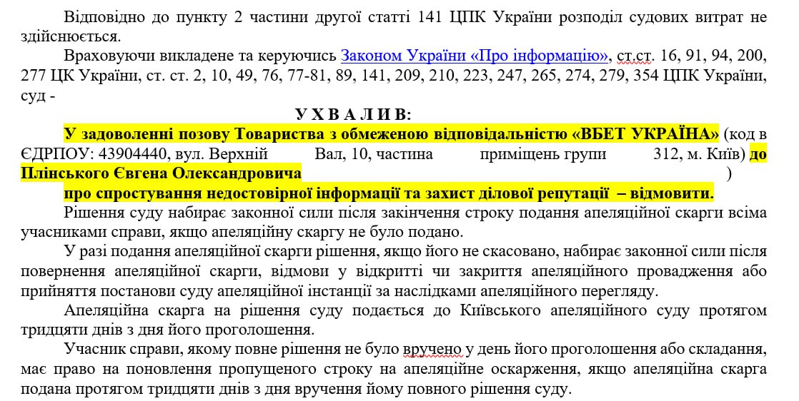 І ще, суд відмовив Vbet в задоволенні позову, тому можна сміливо псувати репутацію Vbet, називаючи його власником Артура Гранца.