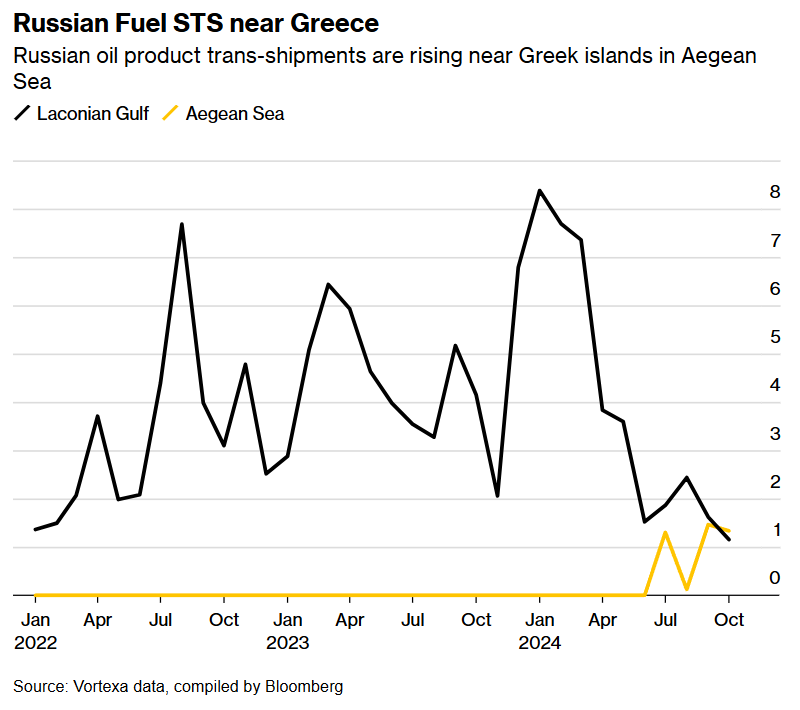 Зазначається, що тепер, за даними аналітиків Vortexa, поблизу островів Лесбос і Хіос в Егейському морі щомісяця з судна на судно переміщують близько 1 млн барелів дизпалива, мазуту та інших нафтопродуктів. "Ця практика, що проводиться таємно з відключеними маячками стеження, допомагає приховати походження нафти та обійти санкції", – зазначає агентство.