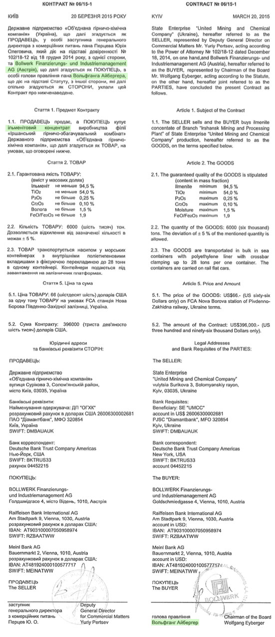 У моєму розпорядженні є десяток контрактів, укладених між українською державою в особі титаних комбінатів та австрійською прокладкою.