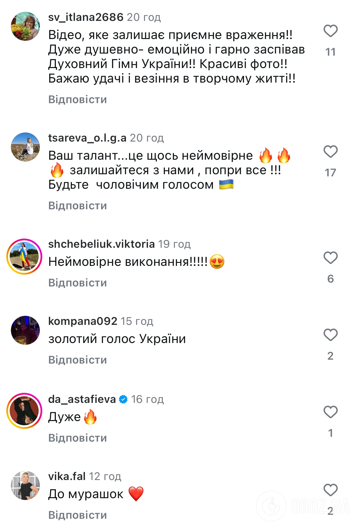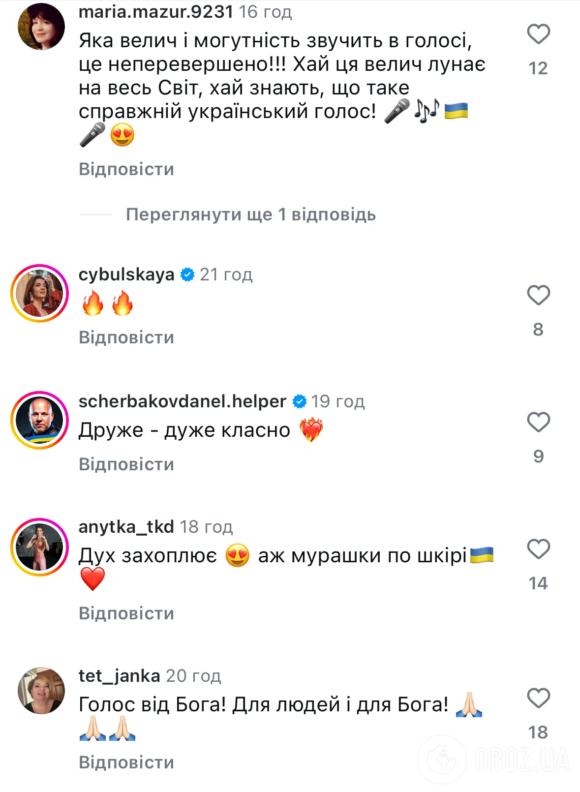 - "Яка велич і могутність звучить в голосі, це неперевершено! Хай ця велич лунає на весь світ, хай знають, що таке справжній український голос!"