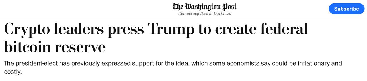 Трампа закликають створити федеральний резерв біткоїнів, - WP