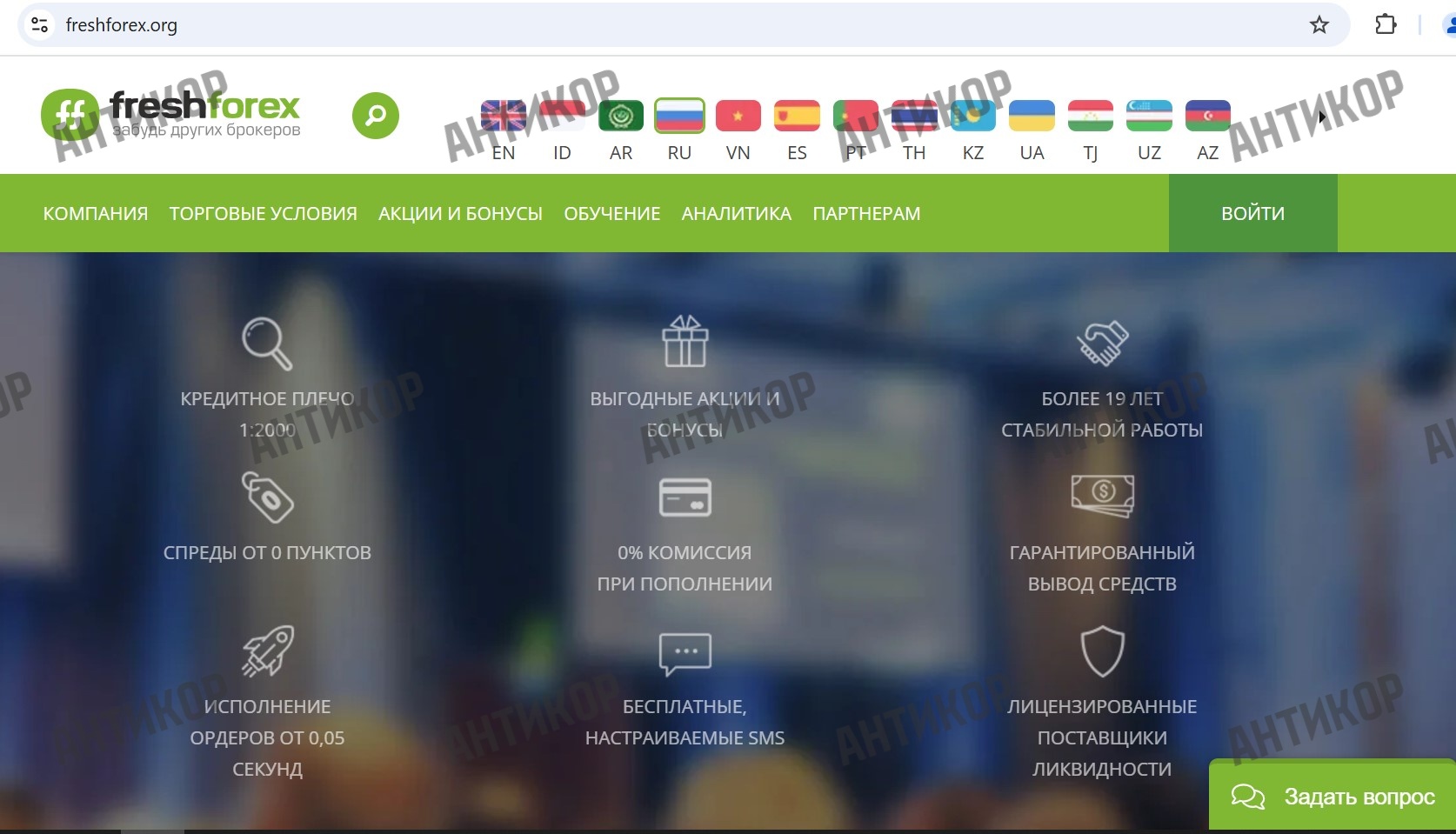 Що стосується конкретно FreshForex Ukraine, то вона успішно працює досі. В цьому можна пересвідчитися, перейшовши на її сайт. Тут охочим заробити легко і швидко пропонують все те ж саме – «інвестувати в фондовий ринок». Причому, судячи з вибору можливих мов спілкування, ця «біржа» в основному орієнтована на пострадянський простір (у тому числі і Росію) і на країни колишнього соцтабору, в основному – країни, що розвиваються.