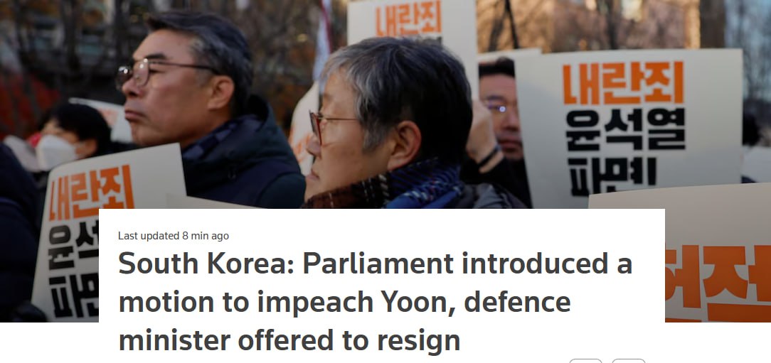 Як повідомляє Reuters, це сталося на тлі нещодавніх подій, коли президент оголосив військовий стан, але згодом був змушений скасувати це рішення через сильний тиск із боку парламенту.