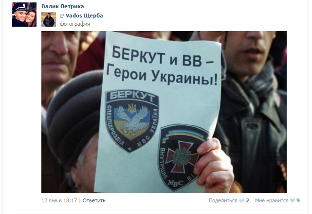 Нинішній поліцейський Карпеченков активно репостив дописи груп антиайдану і сепаратистської організації «Народная Дружина»
