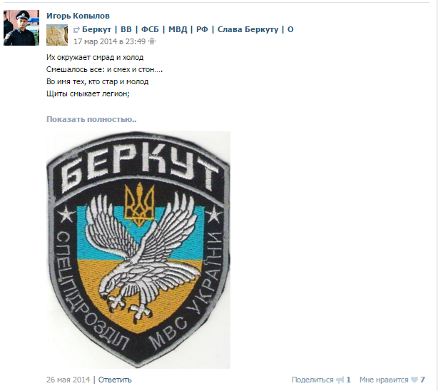 Деякі працівники патрульної поліції міста Одеси не соромляться показувати свої сепаратистські погляди на своїх сторінках у соціальних мережах. Хтось репостить вірші на підтримку Беркута, а хтось сміливо позує в одязі з російською символікою.