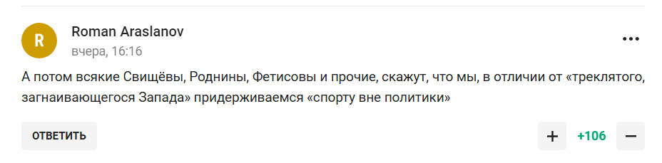 "Соромно. Я дійсно так і повірив, що це ініціатива фанатів, а не наказ згори", "Так йдіть і стійте, а не малюнки малюйте, "захисники", "Ну сподіваюся, що після матчу вони поїдуть підписувати контракти", "Згадуються банери в Херсоні: "Росія тут назавжди", "Клоунада". Сирію вже "захищали", може, вже вистачить. Хіба у Росії мало де реалізуватися?" – кепкують користувачі.