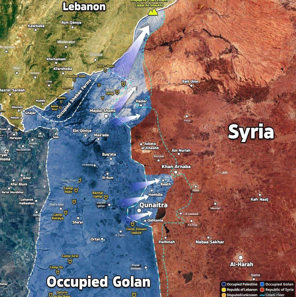 Окрім того, ЗМІ повідомляють, що ізраїльтяни вийшли за межі буферної зони і атакували населені пункти Ель-Кунейтра, Ель-Баас, Ель-Хамідія, а північніше - Хадр, який має важливе значення для комунікацій Лівану через сирійську територію.