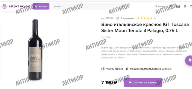 Але, як виявилося, в бочці меду є велика ложка дьогтю. І дьоготь цей – вино. Яке виробляє Стінг на своєму винограднику в Італії та продає в Росії. Причому продає – саме в теперішньому часі, а не до 2022 року. У лінійці вин, які виробляє Стінг разом зі своєю дружиною Труді Стайлер, такі відомі марки, як Sister Moon Il Palagio, Casino delle Vie Il Palagio, When We Dance Il Palagio, Message In A Bottle Il Palagio.