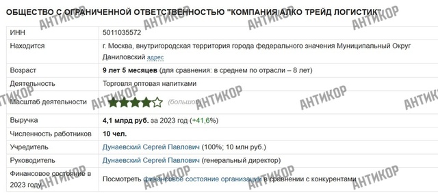 Компанія-імпортер – ТОВ «Алко Трейд Логістик», зареєстроване в Москві. Яка, до речі, минулого року суттєво збільшила прибуток: