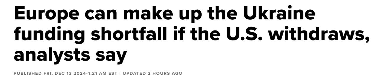 Інші запропоновані експертами рішення стосуються збільшення витрат європейських держав. Телеканал нагадує, що з січня 2022 року по жовтень 2024 року Європа виділила 241 мільярд євро допомоги, а США — 119 мільярдів євро. З цієї суми фактично надано 125 мільярдів євро від Європи та 88 мільярдів від США.