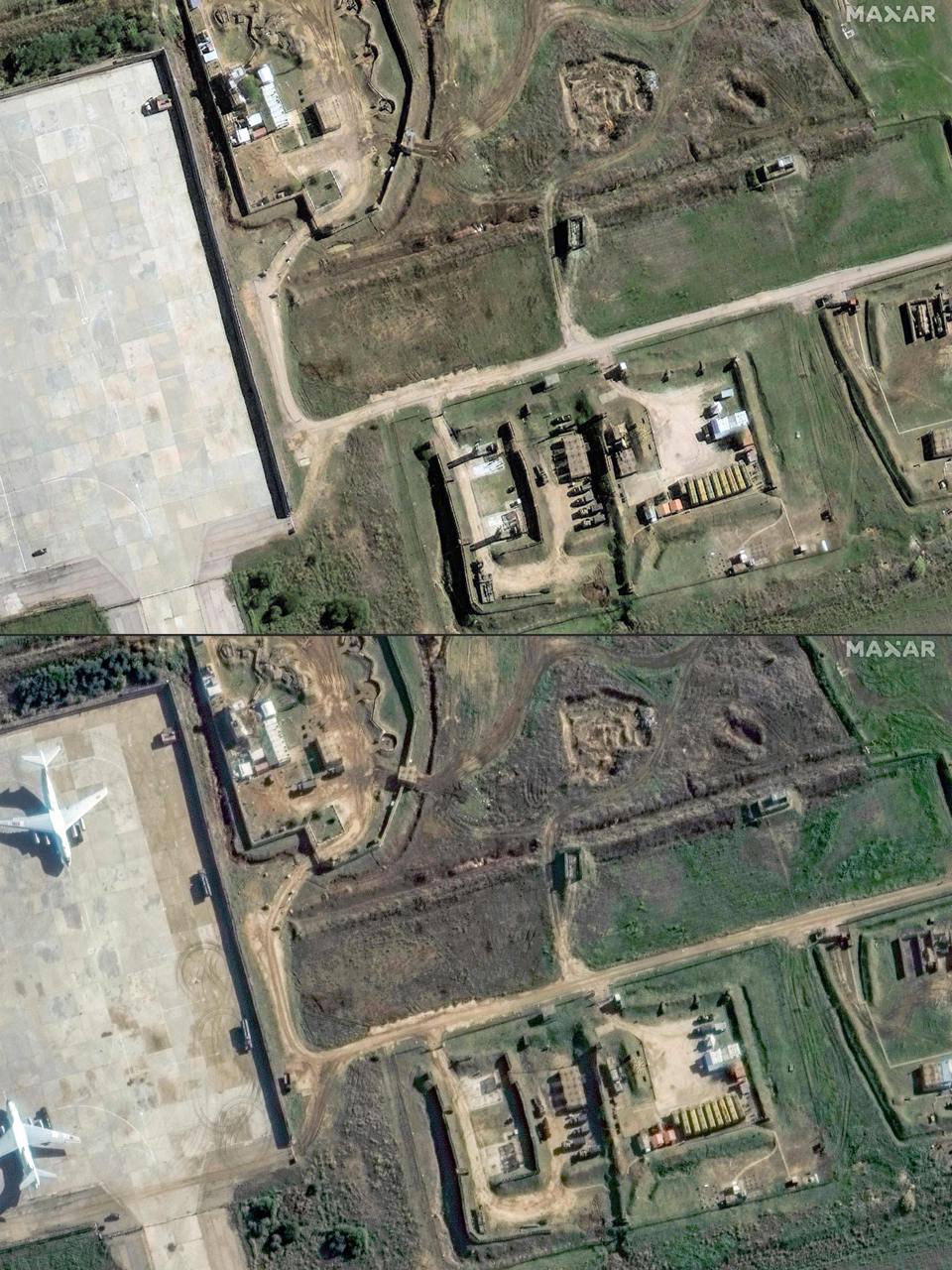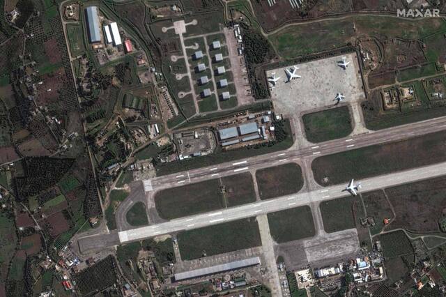 На знімках від компанії Maxar Technologies видно, що на авіабазу Хмеймім прибули два вантажні літаки Ан-124, Іл-76, а також вантажні літаки менших моделей – три Ан-32 та один Ан-72. У літаків відкриті носові відсіки для завантаження важкого обладнання.