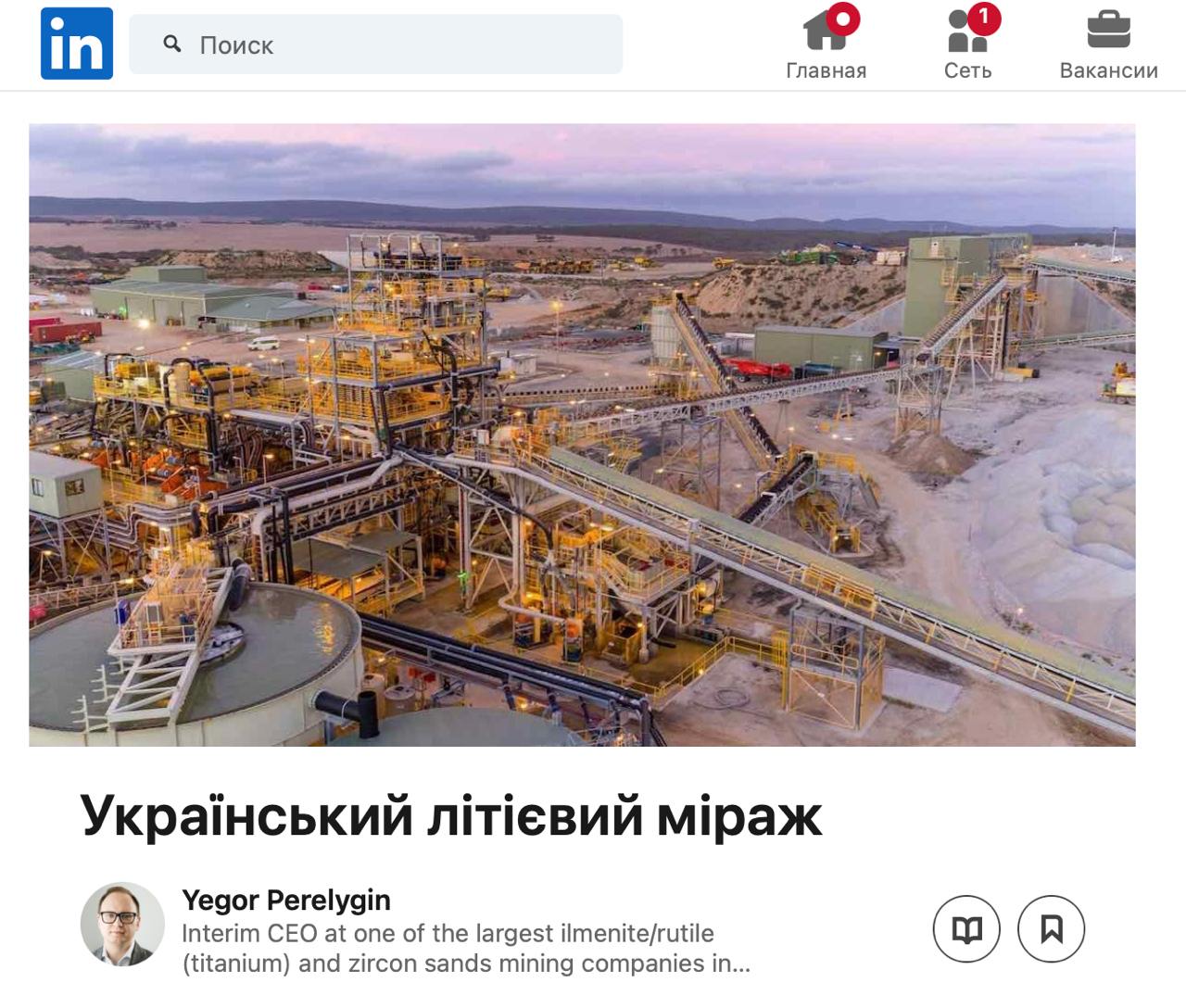 "Тому, теза "приходьте до нас, у нас є літій" з самого початку некоректна і проблематична. Родовища не підготовлені. Конкурентні переваги відсутні. Основні економічні фактори — украй негативні," — пише Перелигін.