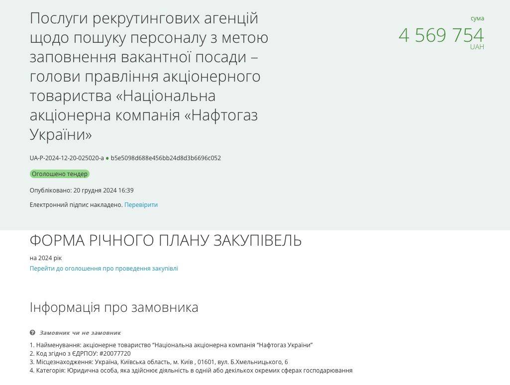 На платформі Prozorro оголосили тендер на послуги рекрутингового агентства, яке займатиметься відбором кандидатів на посаду голови правління.