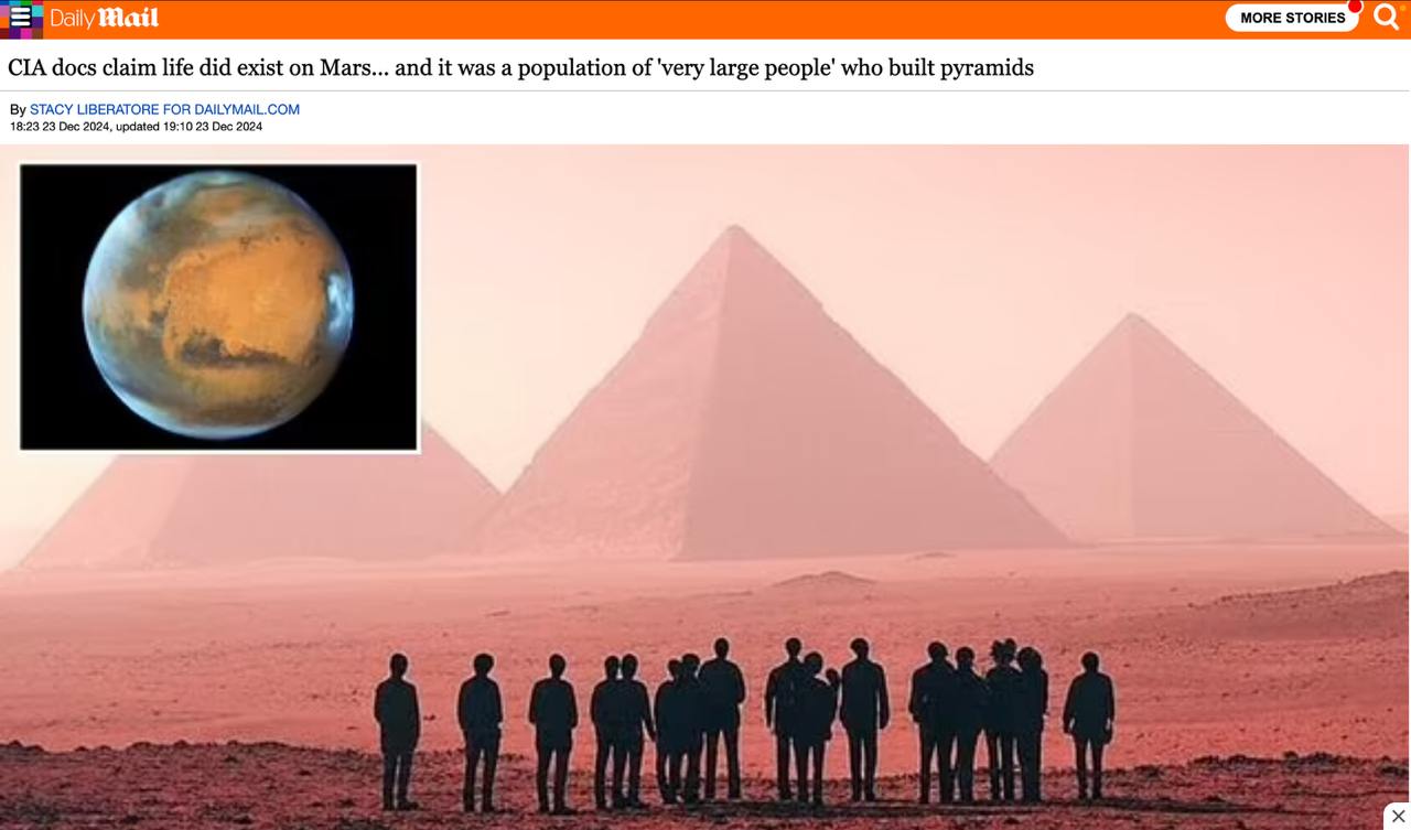 У ЦРУ "дізналися", що на Марсі було життя, а піраміди будували велетні, повідомляє Daily Mail.