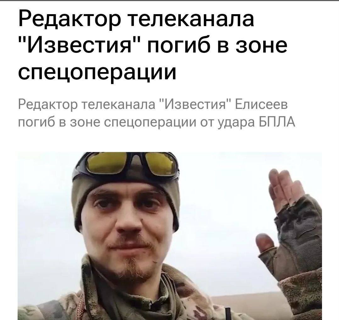 В Україні загинув редактор російського пропагандистського каналу Максим Єлісєєв.