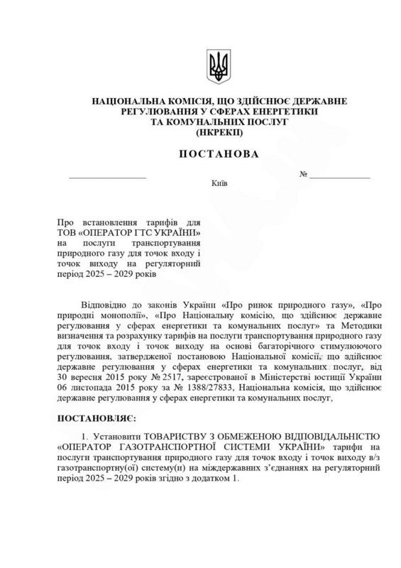 НКРЕКП планує провести голосування щодо питання підвищення тарифів для Оператора газотранспортної системи України (ОГТСУ) в 4 рази - з 160 до 660 грн за тис. куб. м.
