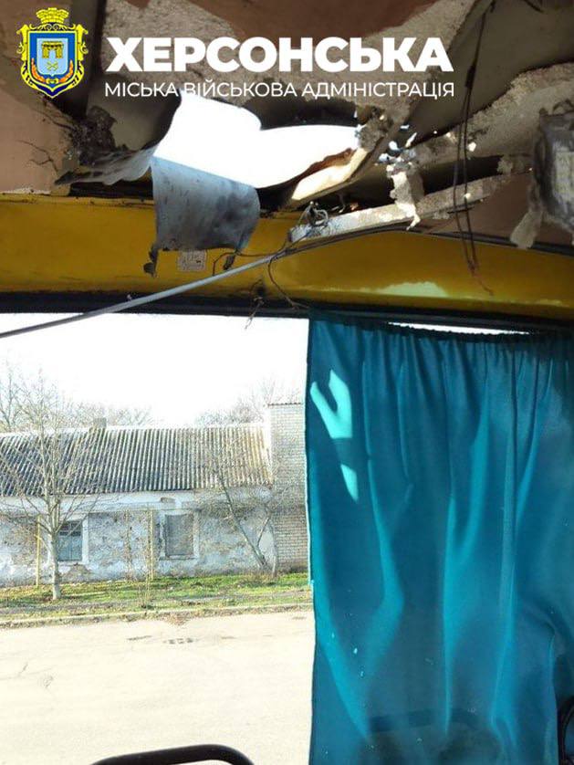У Херсонській МВА повідомили, що російські окупанти атакували за допомогою безпілотників у прибережній зоні центральної частини міста одразу два маршрутних автобуси. У МВА підтвердили, що у одного з водіїв акубаротравма. Пасажири не постраждали. Транспорт пошкоджено.