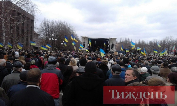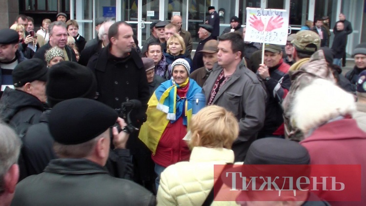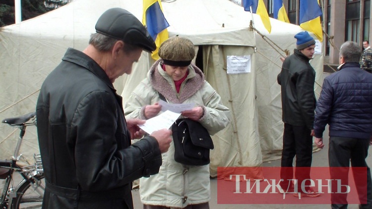 Это такая же Украина, как и множество других населенных пунктов. Но как только я сажусь в городской троллейбус, чтобы проехать несколько остановок до центральной площади перед горизбиркомом, то сталкиваюсь с другим миром. Бабушки и дедушки, мужчины и женщины громко бросают проклятия в окна, когда троллейбус обгоняют машины движения «Автомайдан» с желто-синими флагами, которые сигналят, созывая всех на политический митинг.
