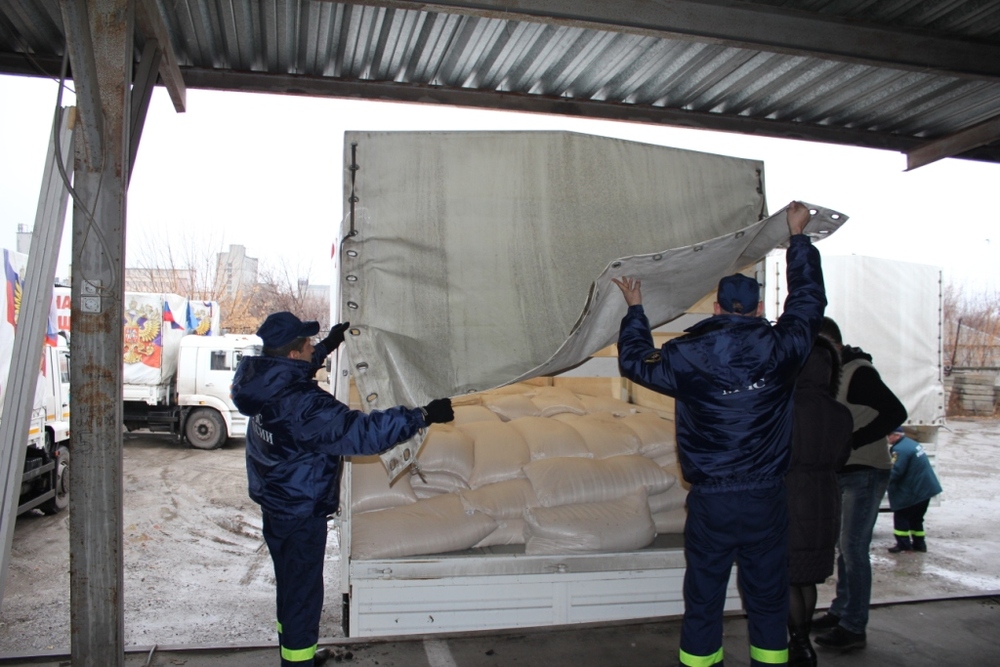 Недавно в Луганск прибыл очередной гуманитарный конвой из России. «Официальное» информагентство «ЛНР» пишет, 45 грузовиков МЧС РФ доставили 457 тонн груза. В «ДНР» 50 грузовиков привезли «порядка 700 тонн» гуманитарных консервов, круп и сахара, передает«ДАН». Всего, по сообщению МЧС РФ, 95 машин привезли немногим больше 1100 тонн гуманитарки.