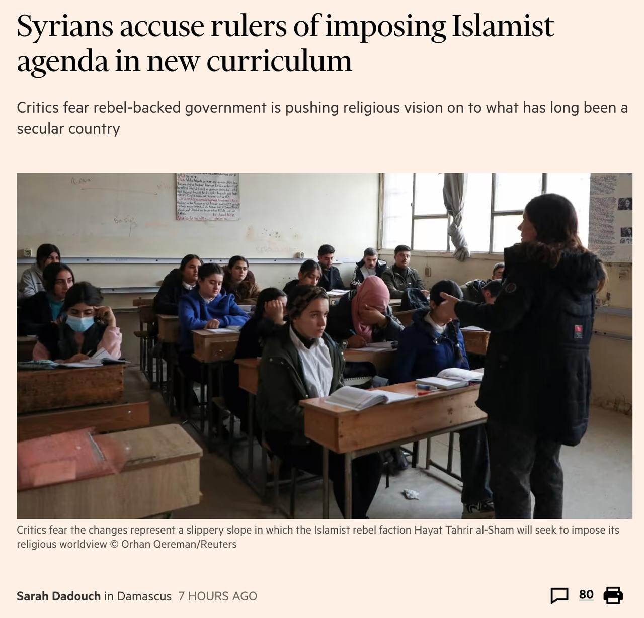 Новий уряд Сирії змінює освітню програму. Критики стверджують, що школярам намагаються нав’язати ісламістський порядок денний, хоча країна довгий час була світською.